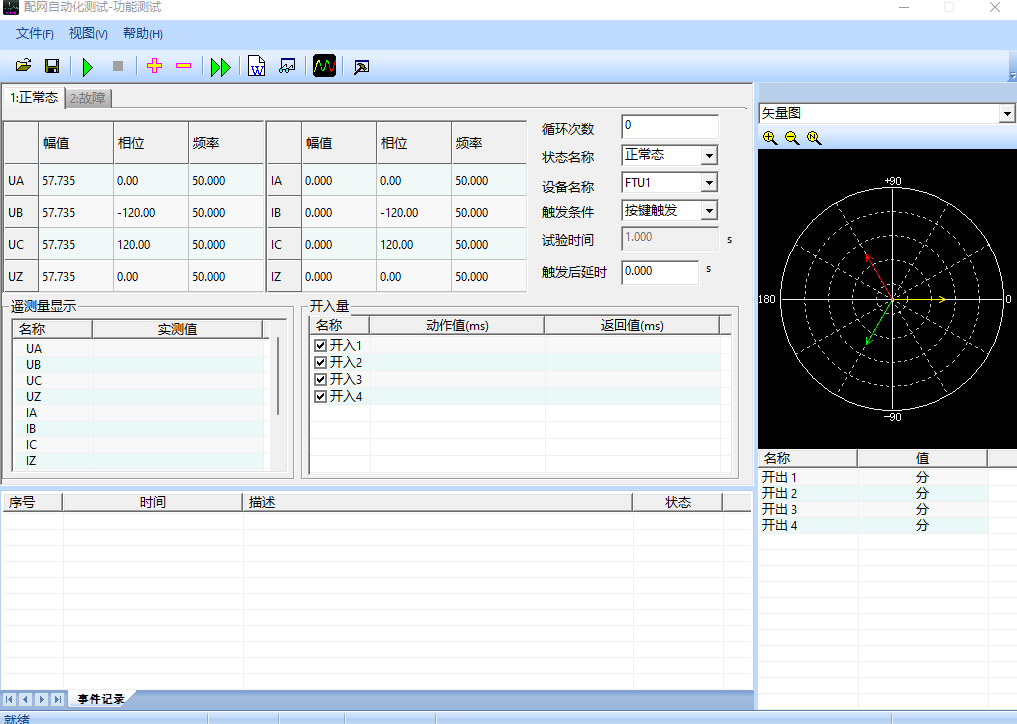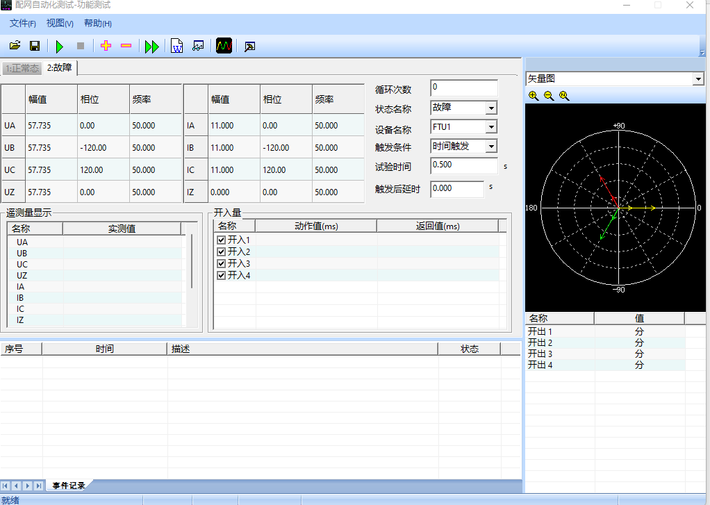 4)配電之星-P2200 進入功能試驗界面,設置正常態(tài)及故障態(tài),然后運行。