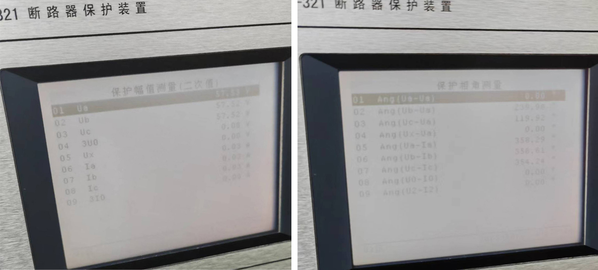 首先測試三相接線是否正確。 加三相不平衡的電壓電流,查看二次采樣值A(chǔ)/B/C三相是否對應(yīng),再計算CT、PT的變比,通過與保護裝置上讀取的值進行對比,判斷變比是否正常。 通過相位來判斷極性是否正確,反極性時相位與加量值偏差180°,最后三相都加0°,看零序電流是否正確。