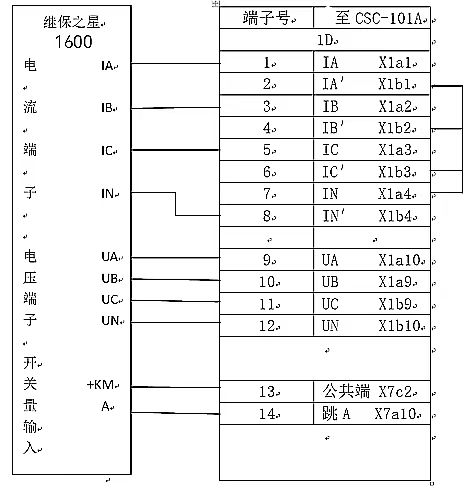 將繼保之星-1600 電壓輸出端“Ua”、“Ub”、“Uc”、“Un”分別與保護(hù)裝置的交流電壓“UA”、“UB”、“UC”、“UN”端子連接。
