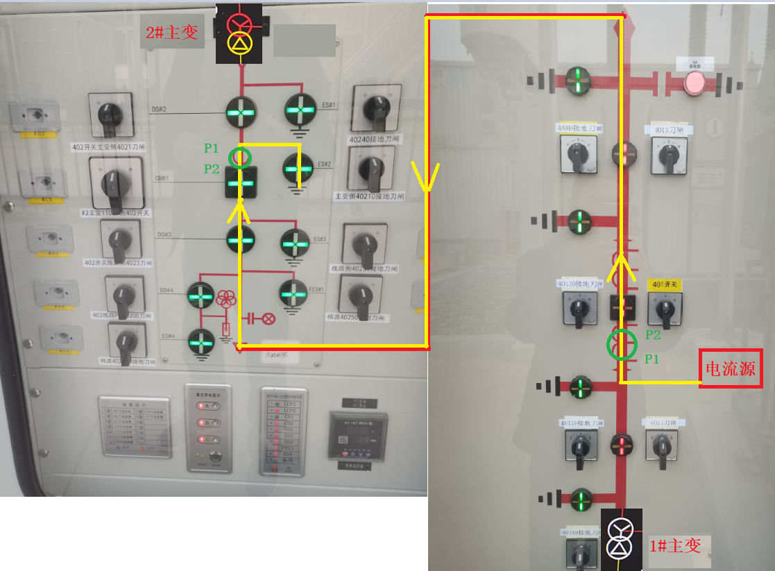 △ 兩個(gè)主變間隔和通流方向