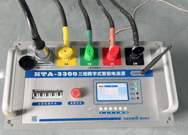 試驗設(shè)備: 兩臺HTA-3300 三相數(shù)字式智能大電流源、兩臺HTV-6000 三相數(shù)字式智能高電壓源、一臺YD-300E 智能電流電壓源無線遙控主機(jī)