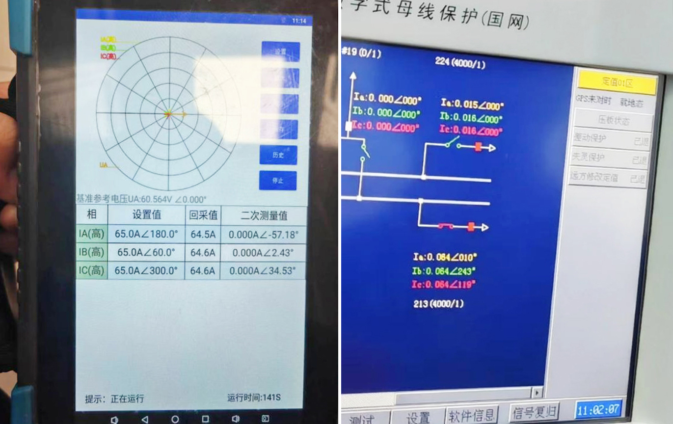 使用HTA-3300 三相數(shù)字式智能大電流源加量模擬該間隔電流