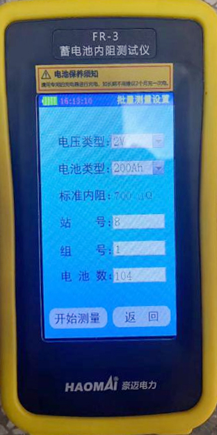 長(zhǎng)按蓄電池內(nèi)阻測(cè)試儀電源開關(guān),打開主界面,根據(jù)需要選擇單節(jié)測(cè)量、批量測(cè)量、數(shù)據(jù)處理、系統(tǒng)設(shè)置等。 若待測(cè)蓄電池?cái)?shù)量較多,可選擇批量測(cè)試。