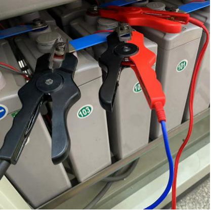 1)將待活化電池退出蓄電池組,然后對(duì)單體電池進(jìn)行活化。 紅色電流線夾接電池正極極柱,黑色電流線夾接電池負(fù)極。