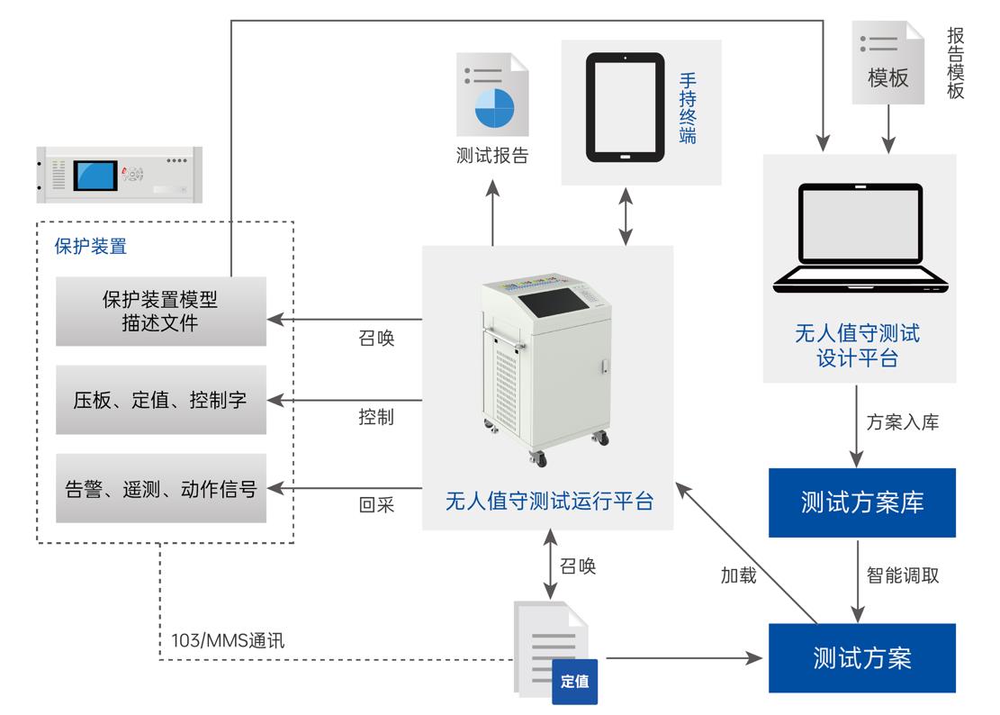 自動測試,無人值守,和保護(hù)裝置通訊采集數(shù)據(jù),形成閉環(huán)