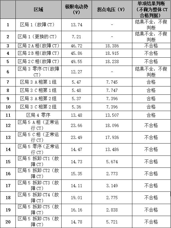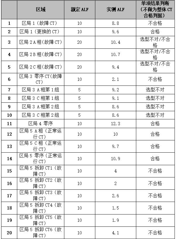 1)CT準(zhǔn)確限值系數(shù)ALF測(cè)試結(jié)果統(tǒng)計(jì)表 (根據(jù)要求CT的選型為10P10,判斷依據(jù):