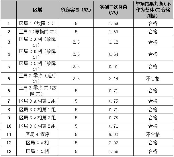 3)實(shí)測(cè)二次負(fù)荷統(tǒng)計(jì)表 (根據(jù)要求CT的額定容量為5VA,判斷依據(jù):