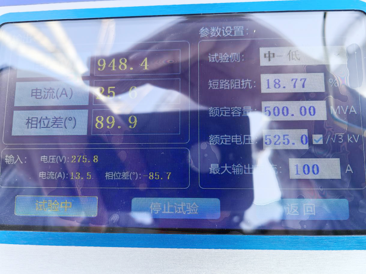 試驗(yàn)過程中若出現(xiàn)異常先計(jì)算裝置輸出時(shí)實(shí)際短路阻抗(輸出電壓除以輸出電流)與理論參數(shù)短路阻抗,確保參數(shù)設(shè)置正確。