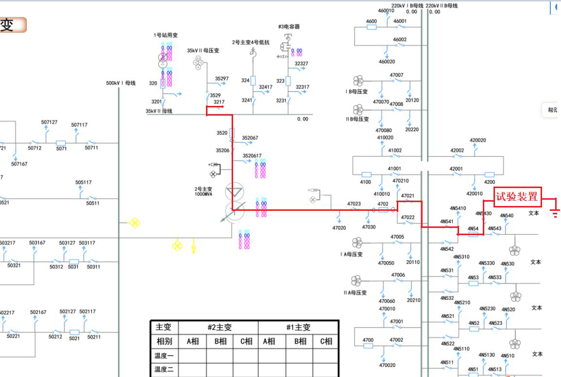 某500kV變電站變壓器采用Y/△-11接線方式,下面以中壓側(cè)對低壓側(cè)通流介紹試驗方法。