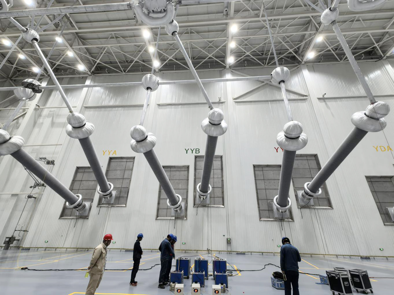 極高端閥側(cè) YY注流100A,網(wǎng)側(cè)感應(yīng)電流22A,YY方式中儀器只需N線接地排,合上閥廳地刀,儀器A / B / C相分別接對(duì)應(yīng)柱子即可形成回路。YY方式注流需要串聯(lián)電抗器,根據(jù)實(shí)際串入電抗器后的阻抗反推短路阻抗參數(shù),也可根據(jù)電抗器銘牌 , 加上 YY方式換流變阻抗 后計(jì)算 得出 。